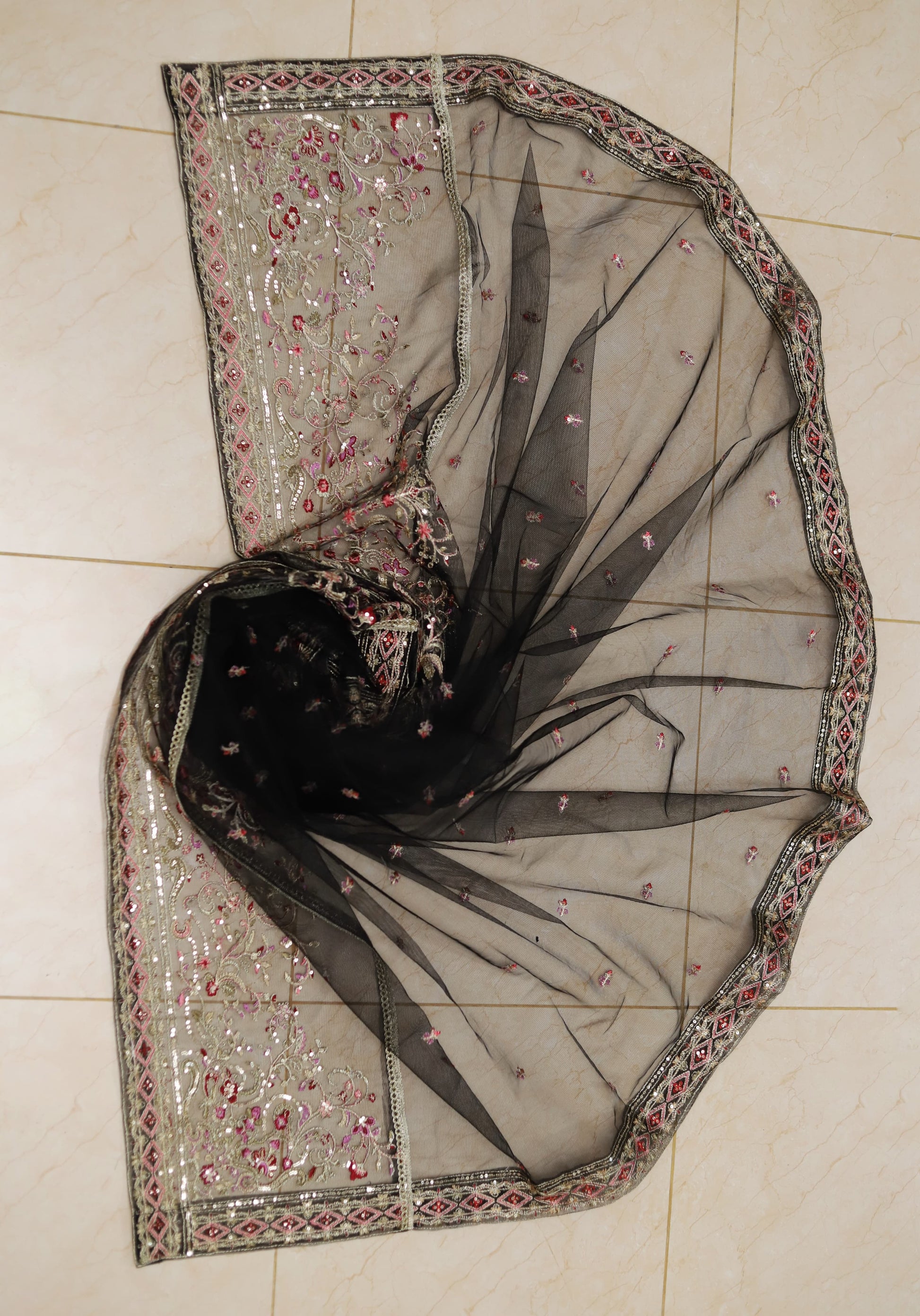 Embroidered Soft Net Dupatta 4 Side Ready to Wear Cutwork with Lass Attached 4 Side